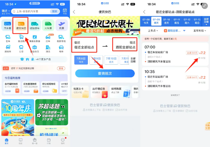 由宿遷汽車客運集團、泗陽順風公司聯(lián)合巴士管家推出的「宿遷往返泗陽」的便民快巴專線將于2025年7月9日正式開通運營,票價低至7.2元起,沿線區(qū)域居民旅客出行迎來新選擇!