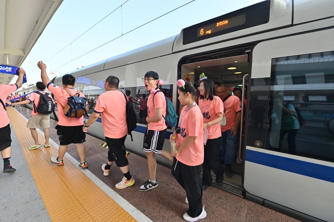 8月3日下午5點10分左右,載有700余名無錫球迷的D9556次專列抵達高鐵宿遷站。