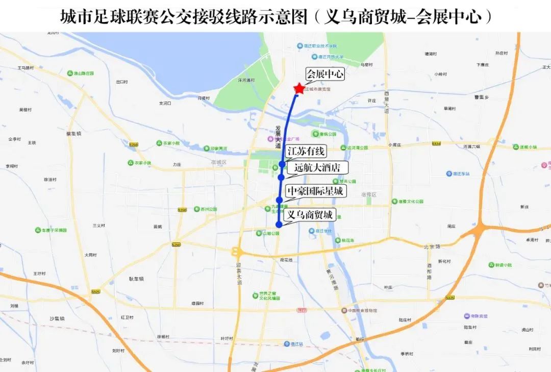 沿線接駁點:義烏商貿城公交站點、中豪國際星城西門、遠航大酒店公交站點、江蘇有線公交站點。