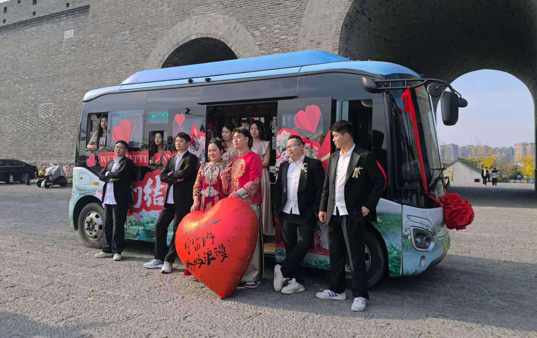 公交婚車的走俏,離不開背后完善的服務支撐與精準的政策引導。為滿足新人的個性化需求,公交公司專門推出定制服務:新人可根據賓客數量靈活選擇“酒都小巴”或公交大巴,還能自主設計車內裝飾、規劃專屬接親路線,串聯起城市里的愛情地標,打造獨屬于自己的婚禮記憶。公司相關負責人表示:“今年,已有近50對新人選用新能源公交車作為婚車,公交婚車已然成為宿遷年輕人的婚嫁新時尚。”這股文明新風尚,正持續升溫。